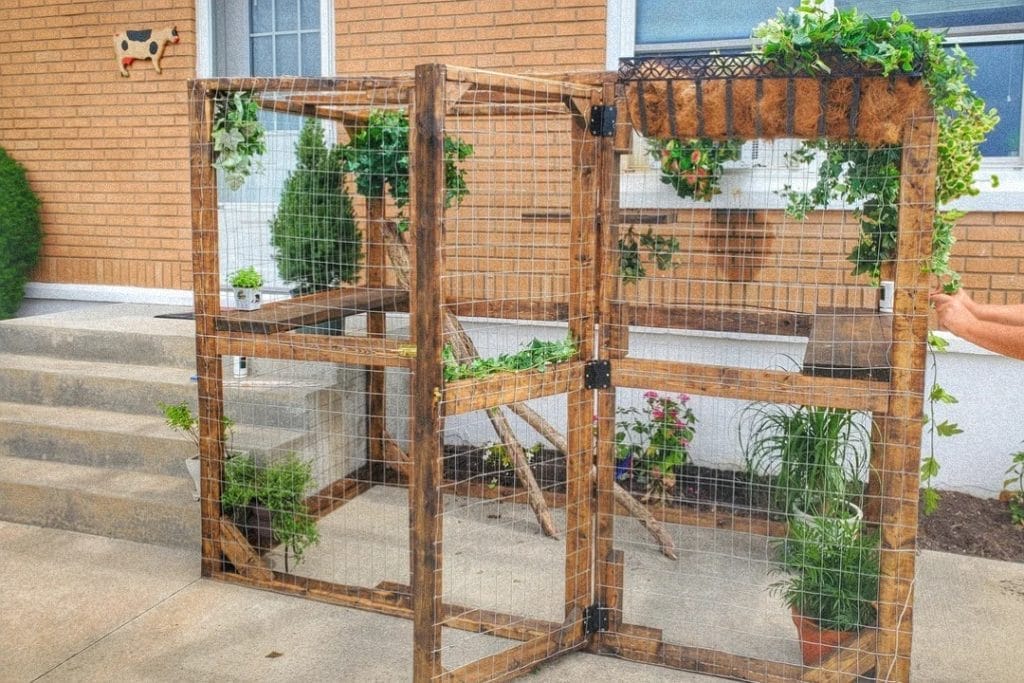 How to make it unique: Add hanging planters at the top, or a cat flap from the house leading directly into the enclosure.